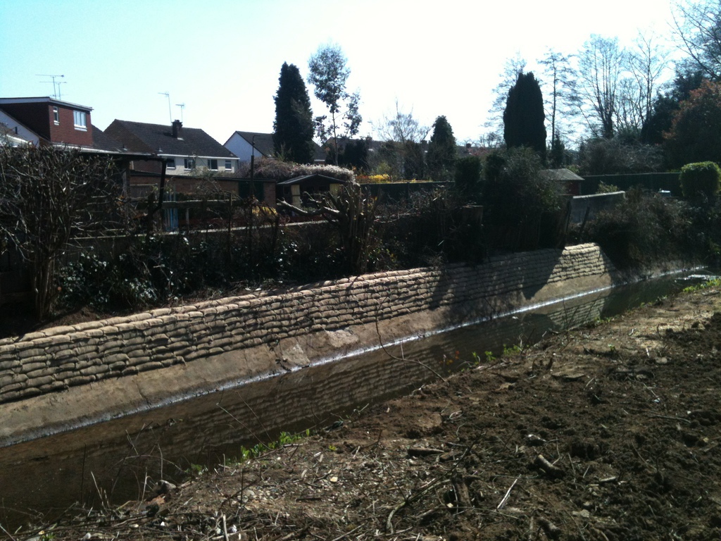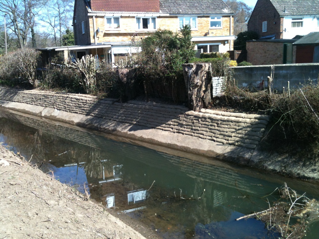 Another Crawley project was to fit concrete sand bags to stabilise the river bank and prevent the adjacent house owner from losing his garden to erosion.